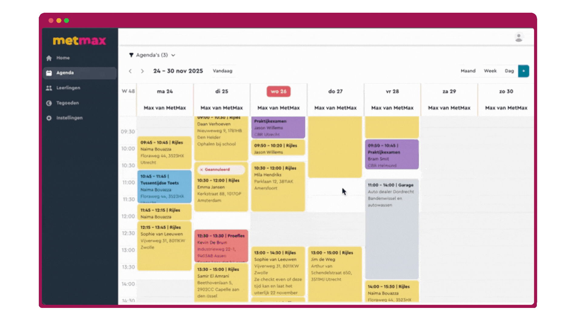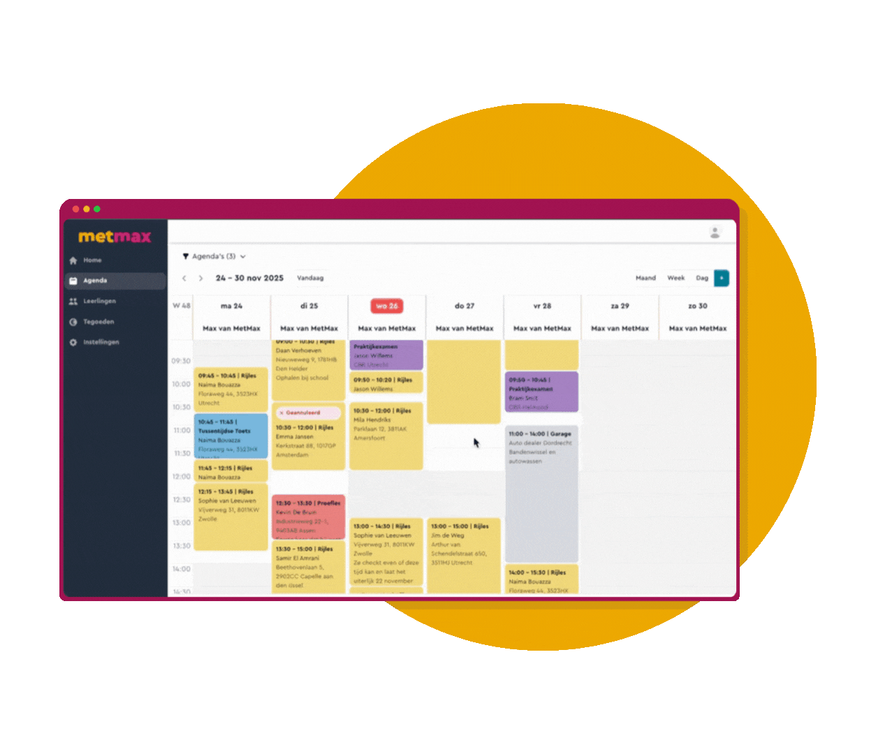 Plan leerlingen en lessen binnen enkele seconden. Dankzij automatische lestegoedkoppeling, duidelijke kleuren en slimme agenda-inzichten werk je sneller en foutloos.