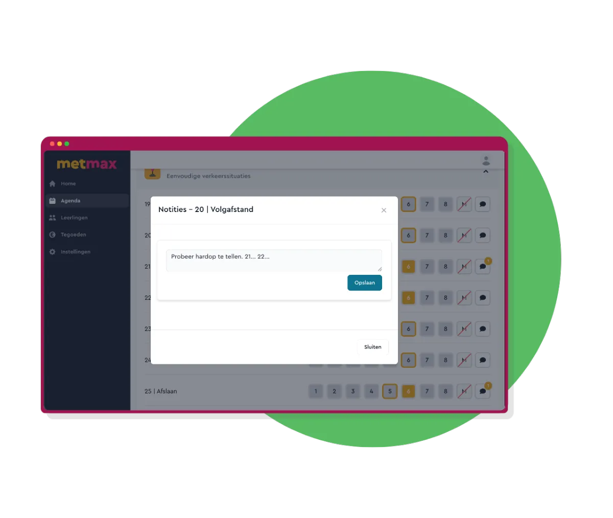 Naast het MetMax RIS-boekje (waar de leerling zijn of haar vorderingen noteert), kun je ook de digitale leskaart eenvoudig delen met het CBR.