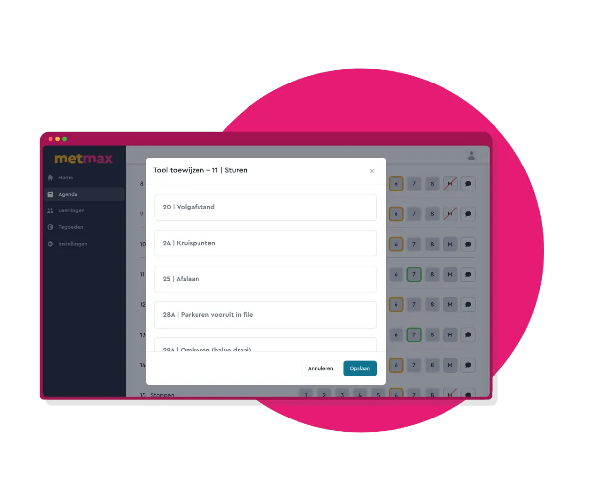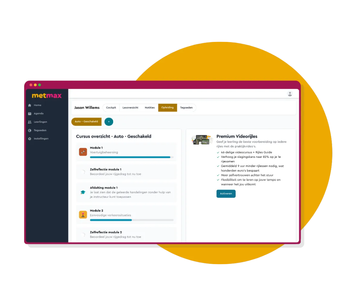 In 45 minuten laten we je alles van het systeem zien. Zo weet je precies wat de mogelijkheden zijn en hoe je het moeiteloos inzet voor jouw rijschool.